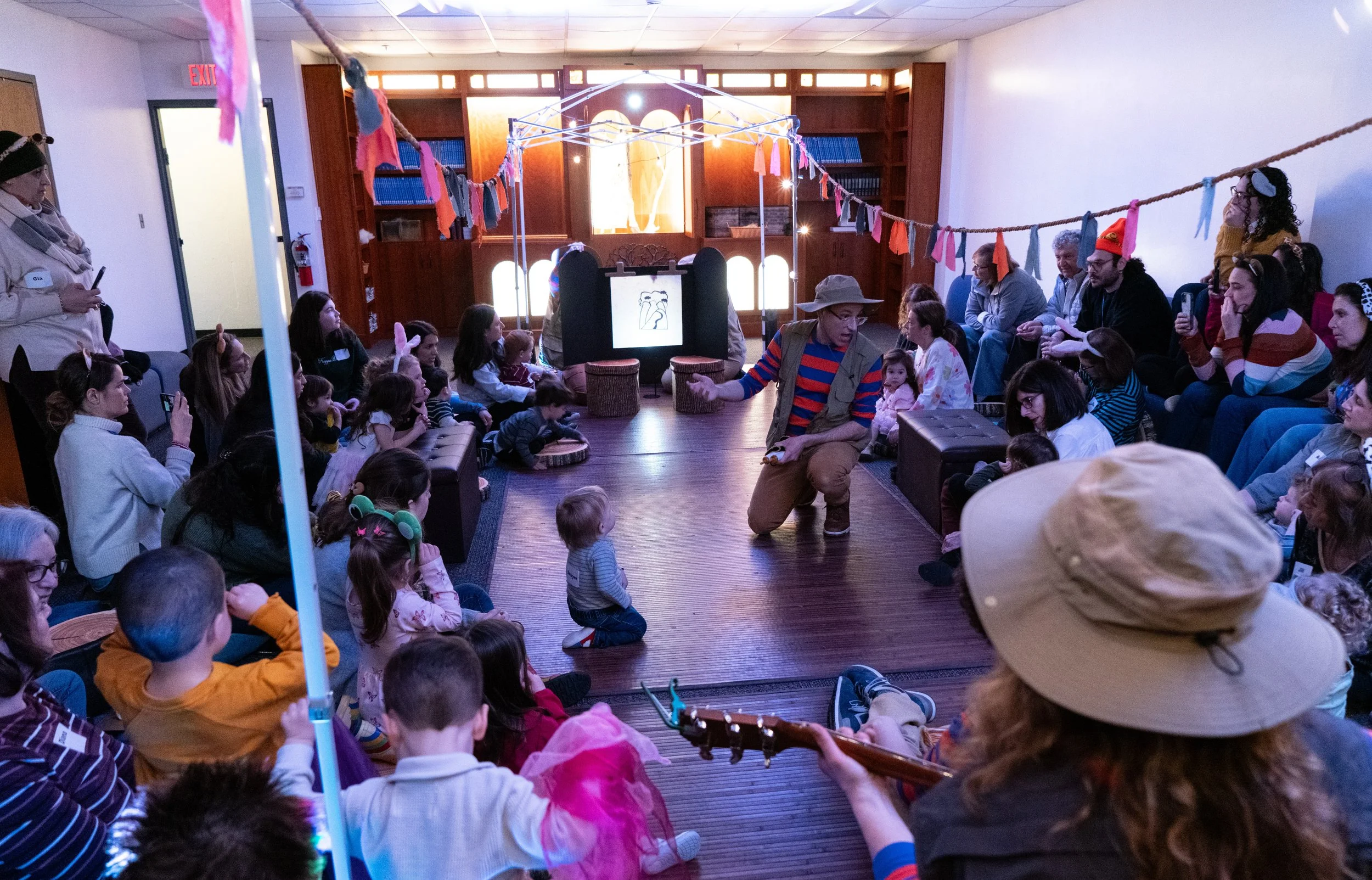 In this unique participatory theatrical experience, Children are given animal ears and “board” the ark to imagine sailing on the water to celebrate Shabbat together. A puppet dove is sent out of the ark and returns with the Torah, bringing the week’s story to explore. Finally, the ark “travels back home” to find a rainbow and welcome in the new week.
